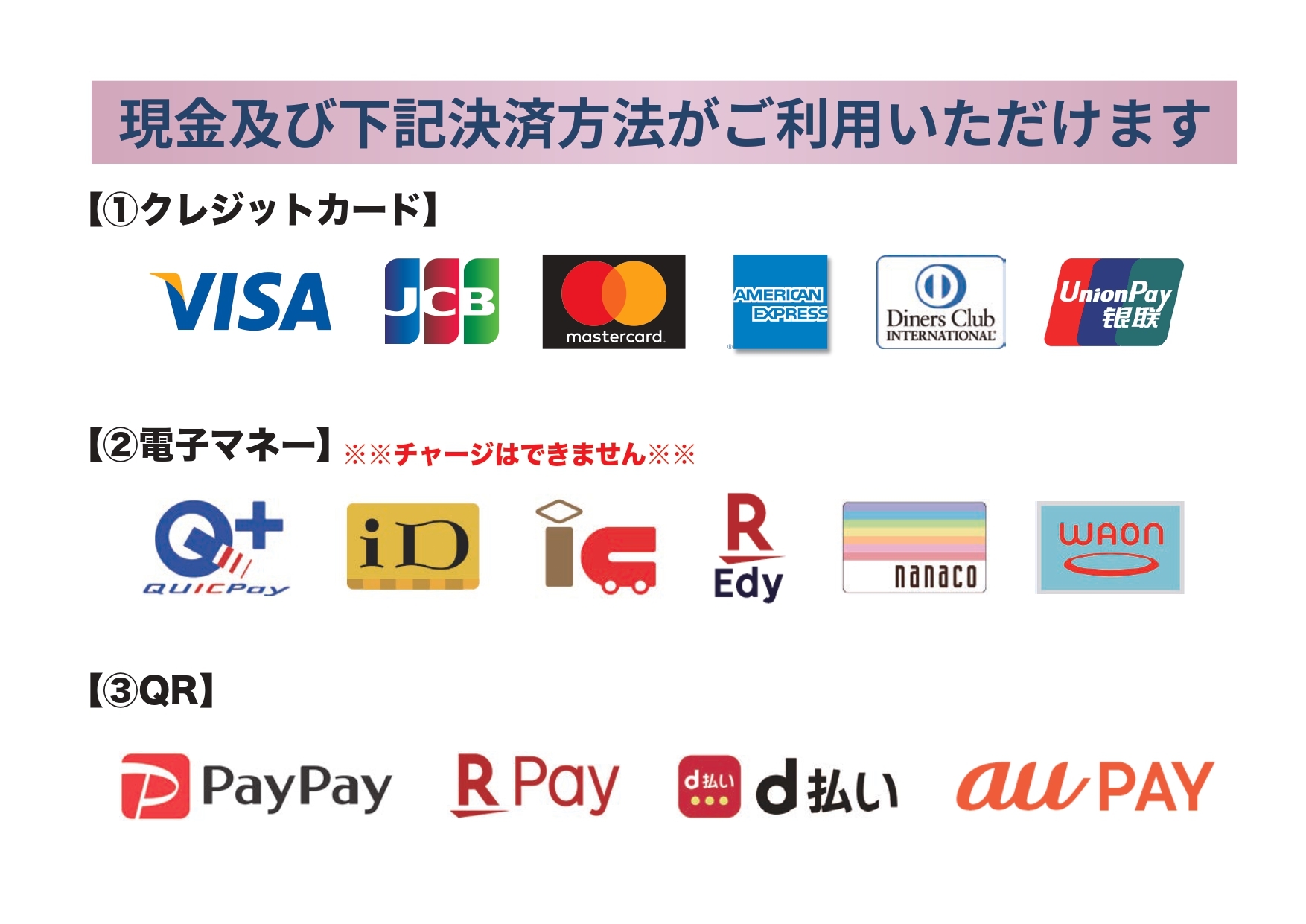 支付方式:仅支持现金支付或者下图中显示的支付方式(微信,支付宝无法使用,敬请谅解)